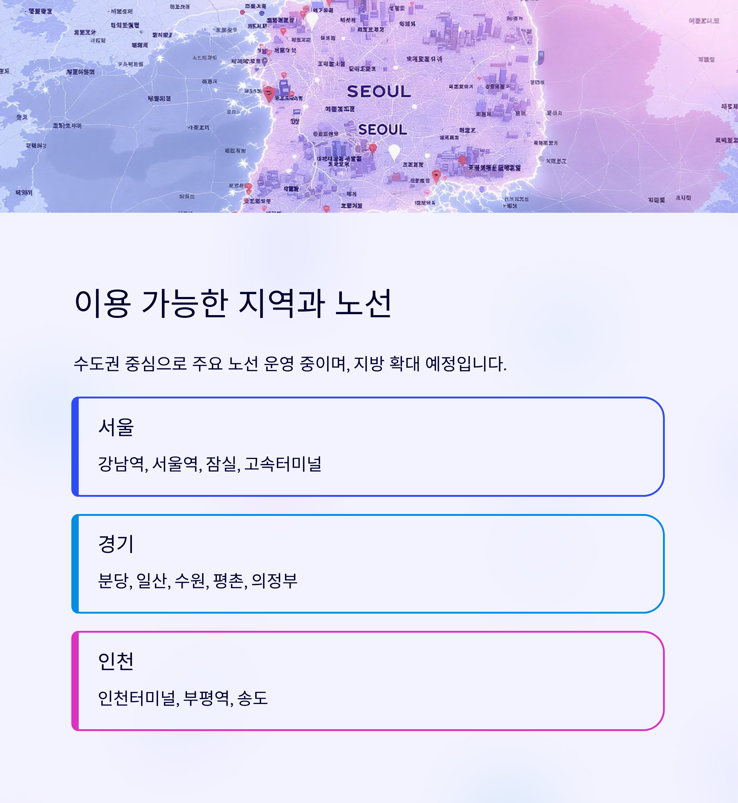 현재는 수도권 중심으로 주요 노선이 운영 중이며, 앞으로 지방도 확대될 예정이라고 합니다.