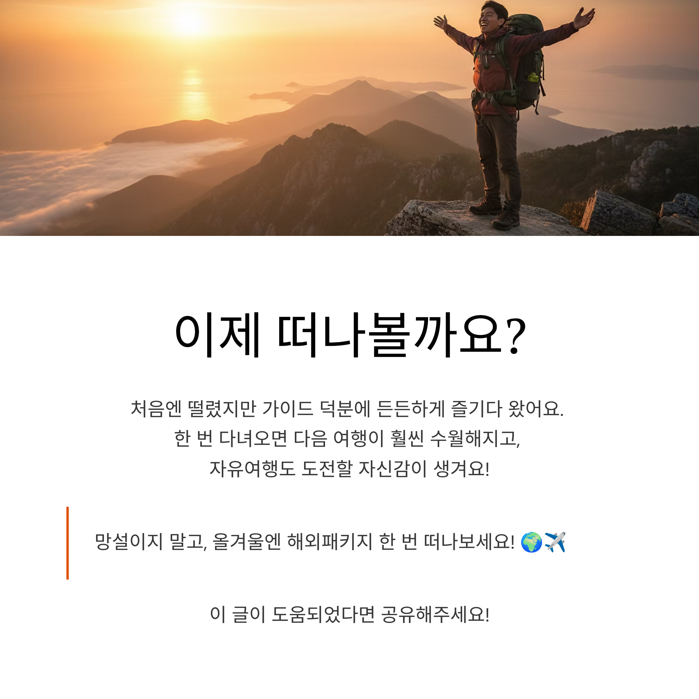 오늘은 제가 직접 다녀온 경험을 바탕으로, 해외패키지를 선택할 때 유의할 점과 꼭 챙겨야 할 꿀팁들을 소개해볼게요!