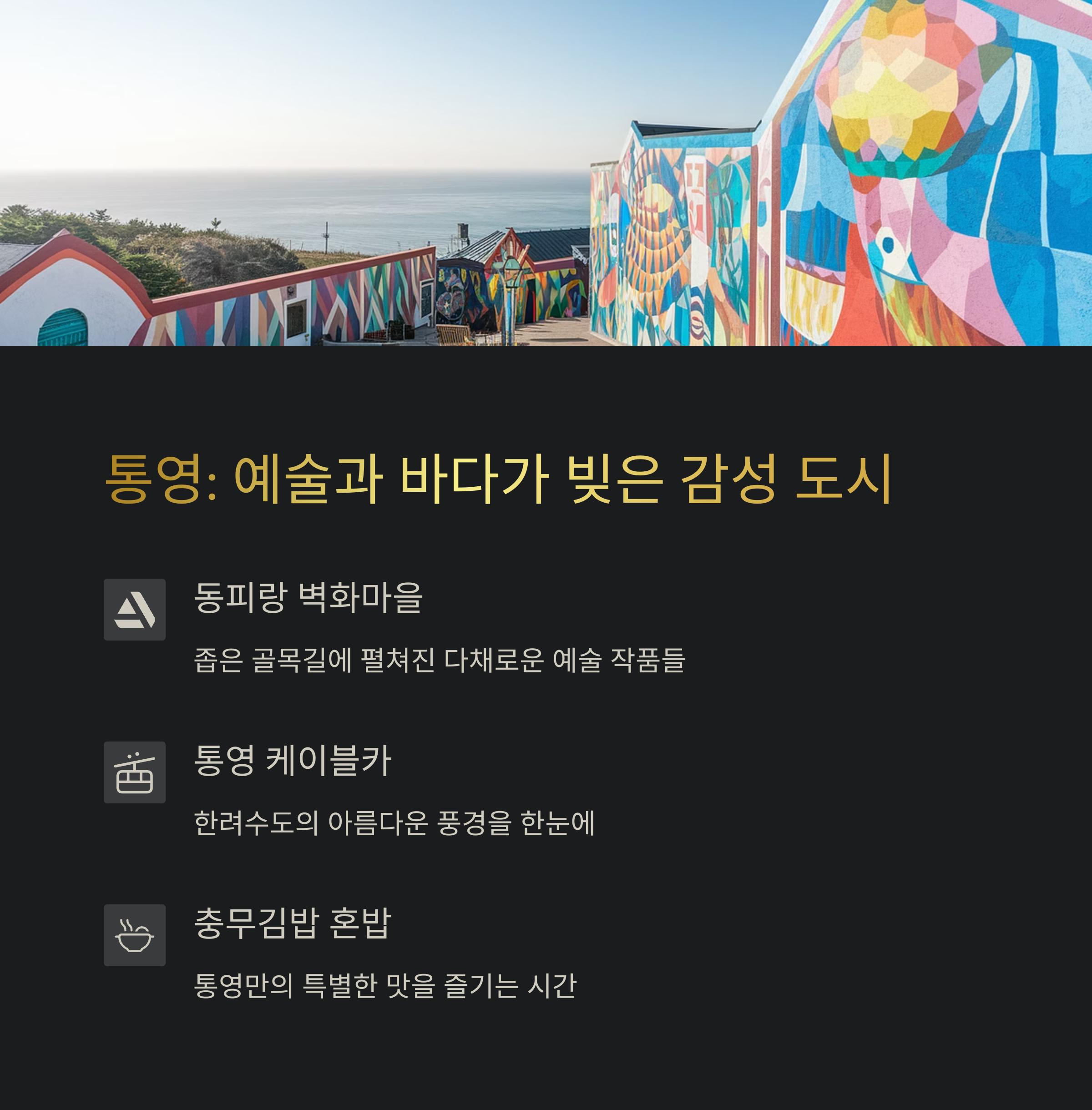 2. 통영 – 바닷바람 맞으며 골목골목 예술 감성🎨