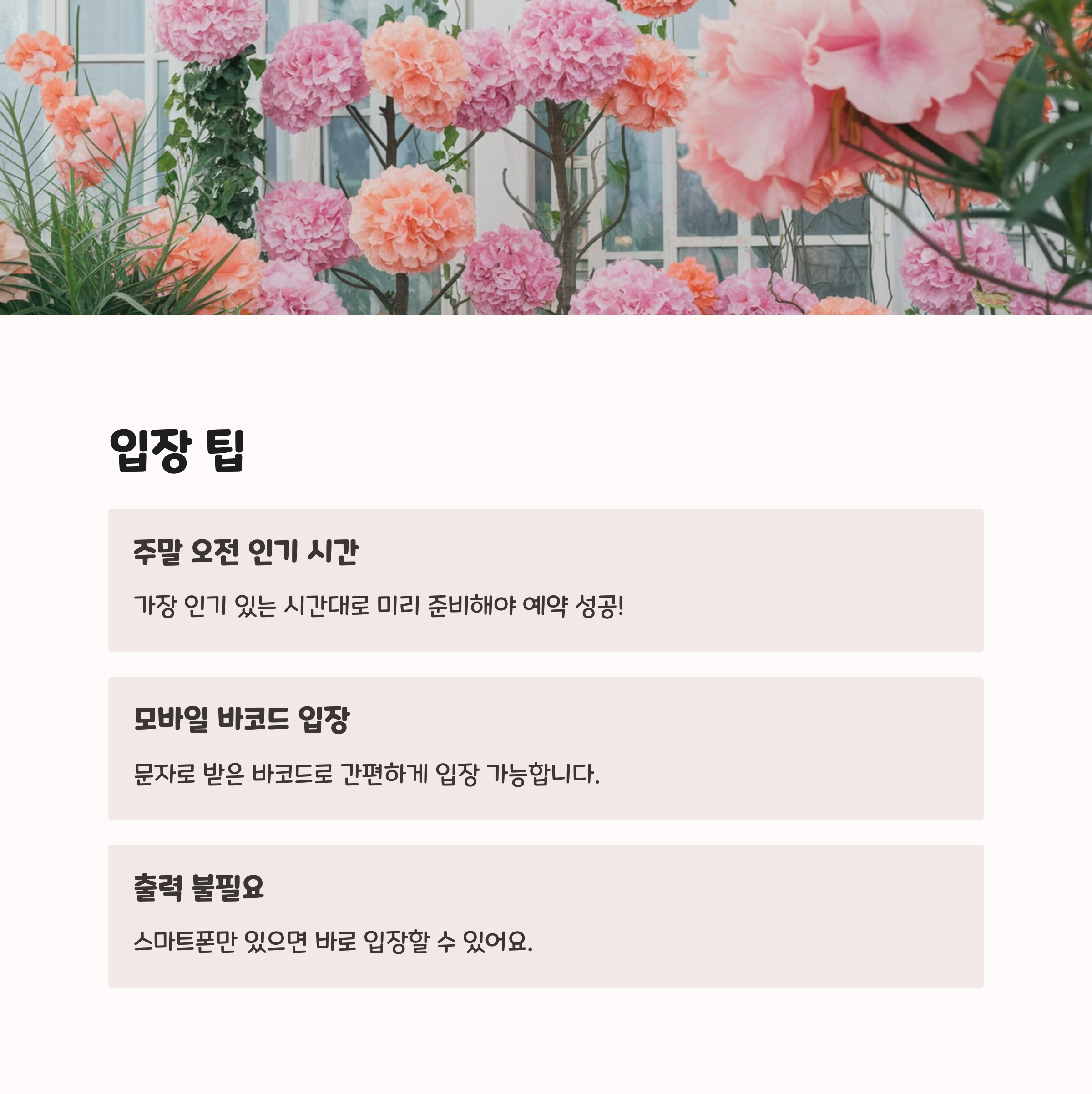 또 예약 후에는 입장 시간 30분 전까지 도착하는 걸 추천해요.