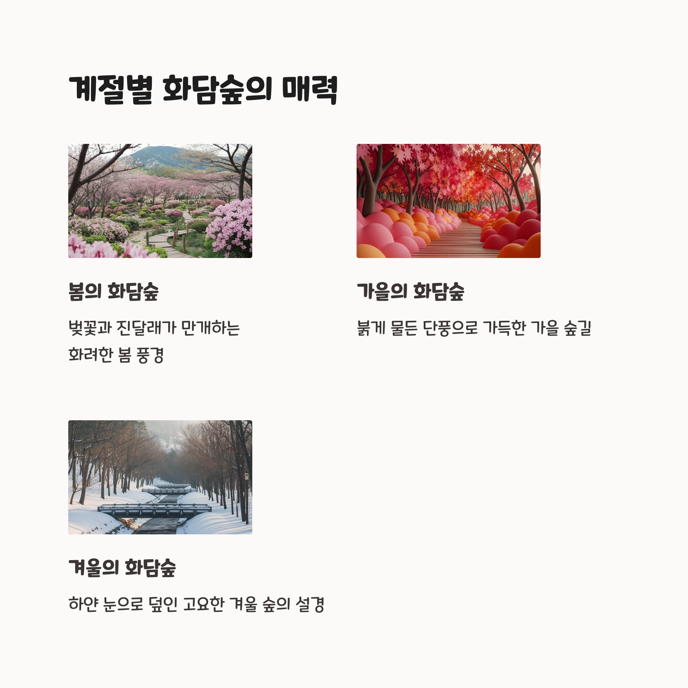 특히 봄이랑 가을엔 단풍, 철쭉, 수국 시즌이라