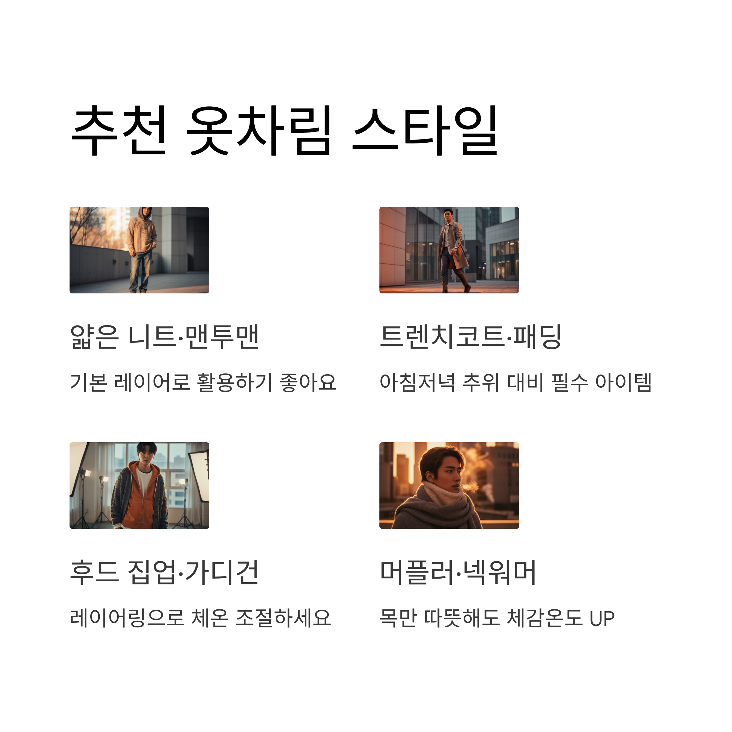 | 머플러 | 목만 따뜻해도 체감 온도 차이가 커요 |