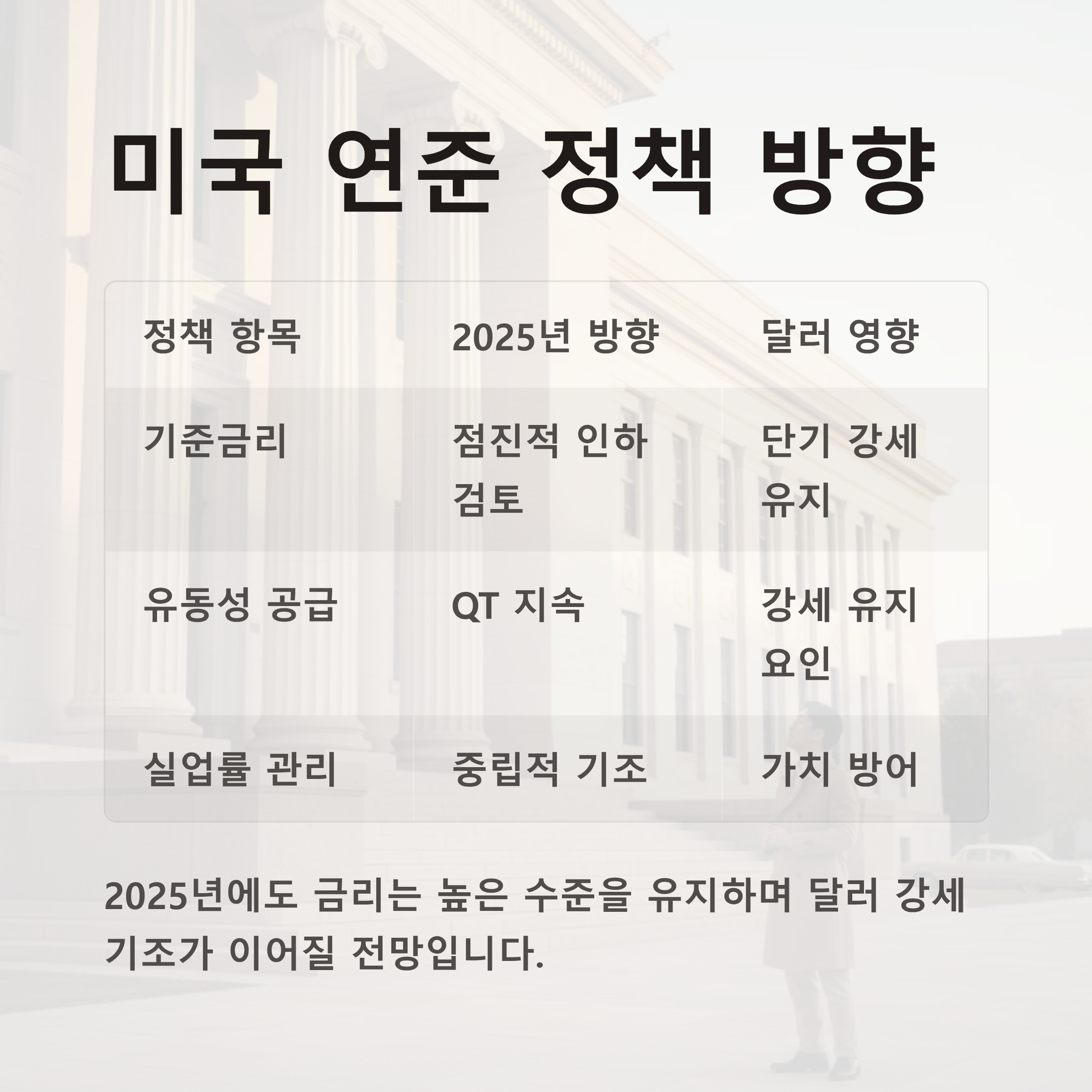 | 정책 항목 | 2025년 방향 | 달러에 미치는 영향 |
