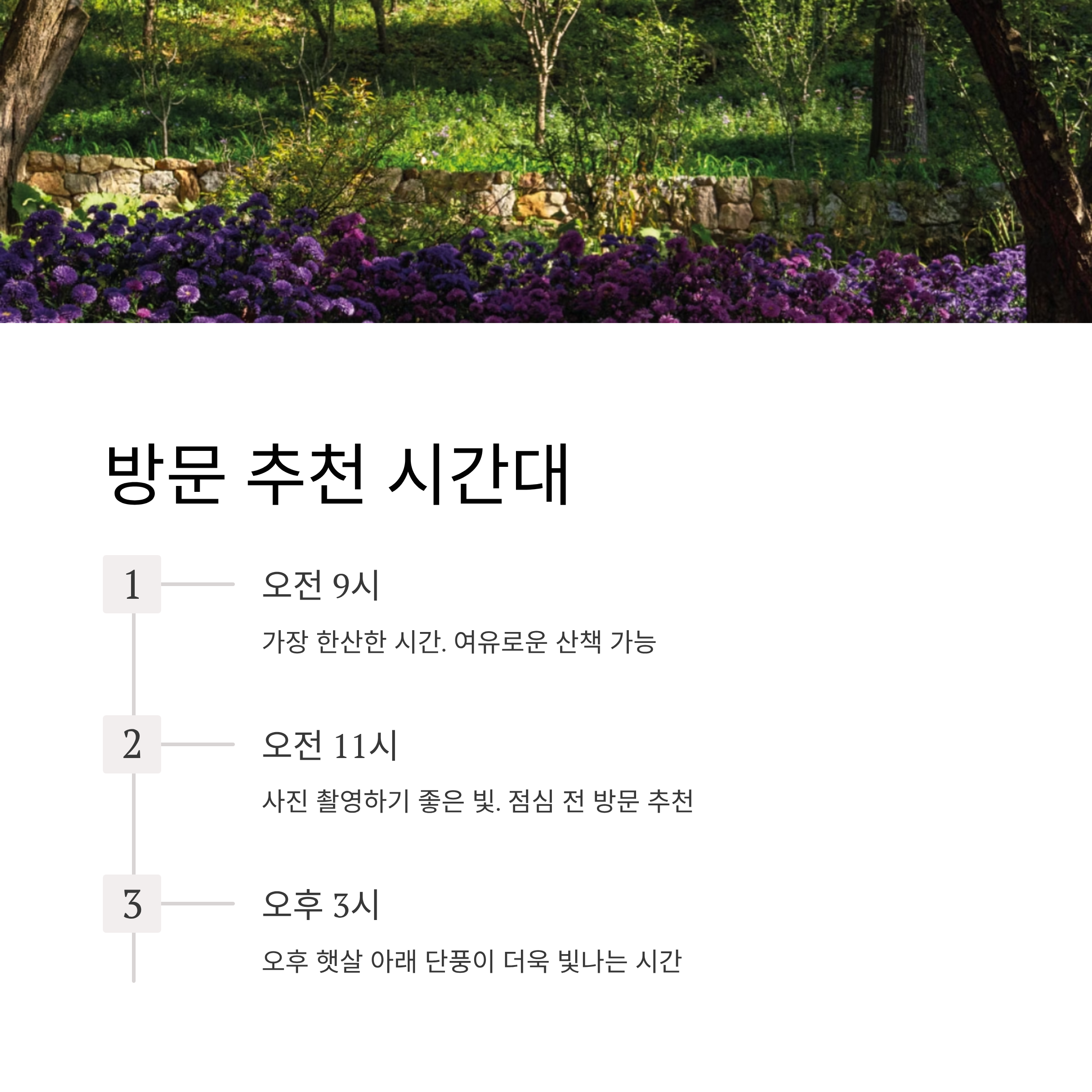 - Q. 입장시간은 정해져 있나요? → A. 시간대별 입장 (1시간 단위)로 예약 필요