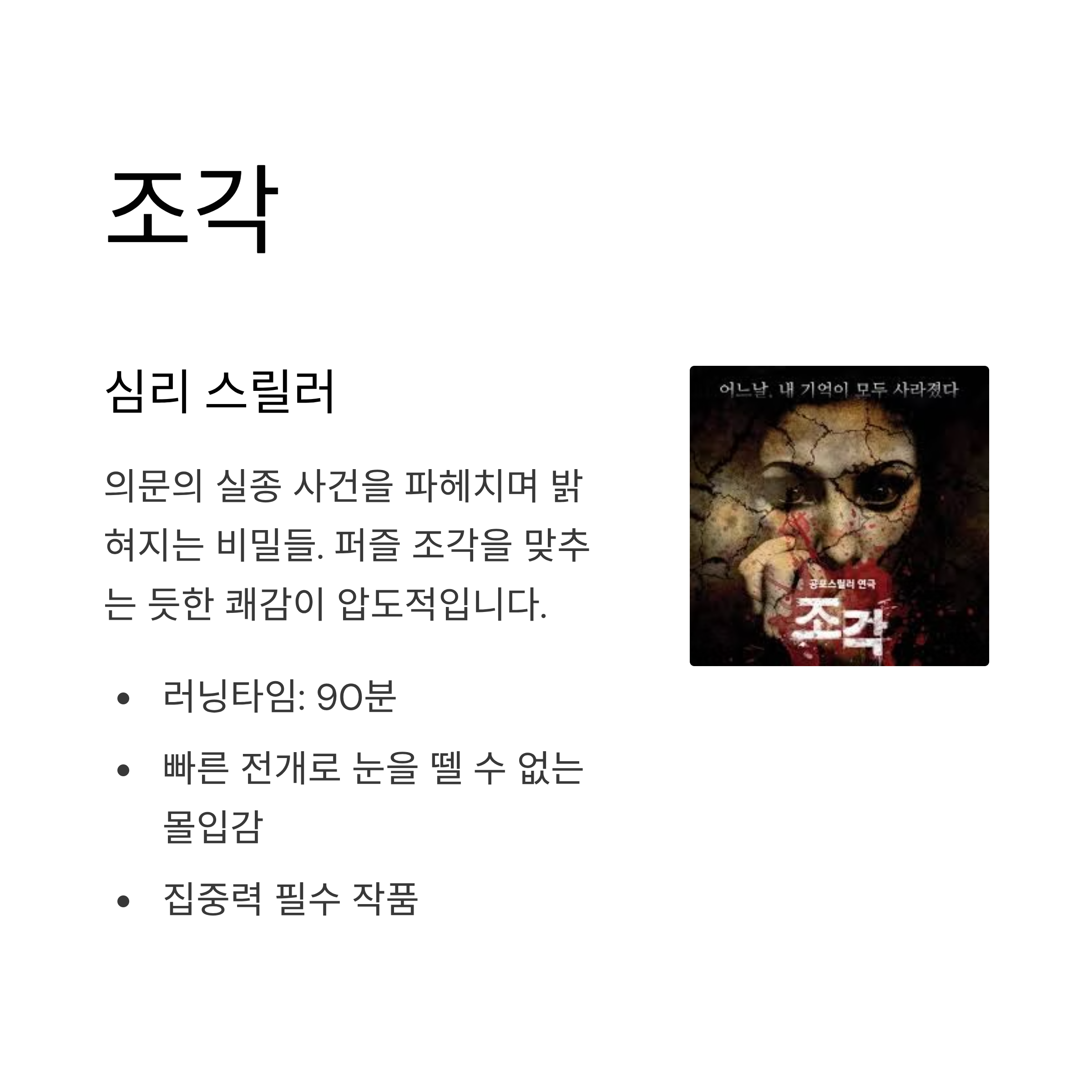 관객으로서 퍼즐 조각을 맞추는 듯한 쾌감이 장난 아니에요.