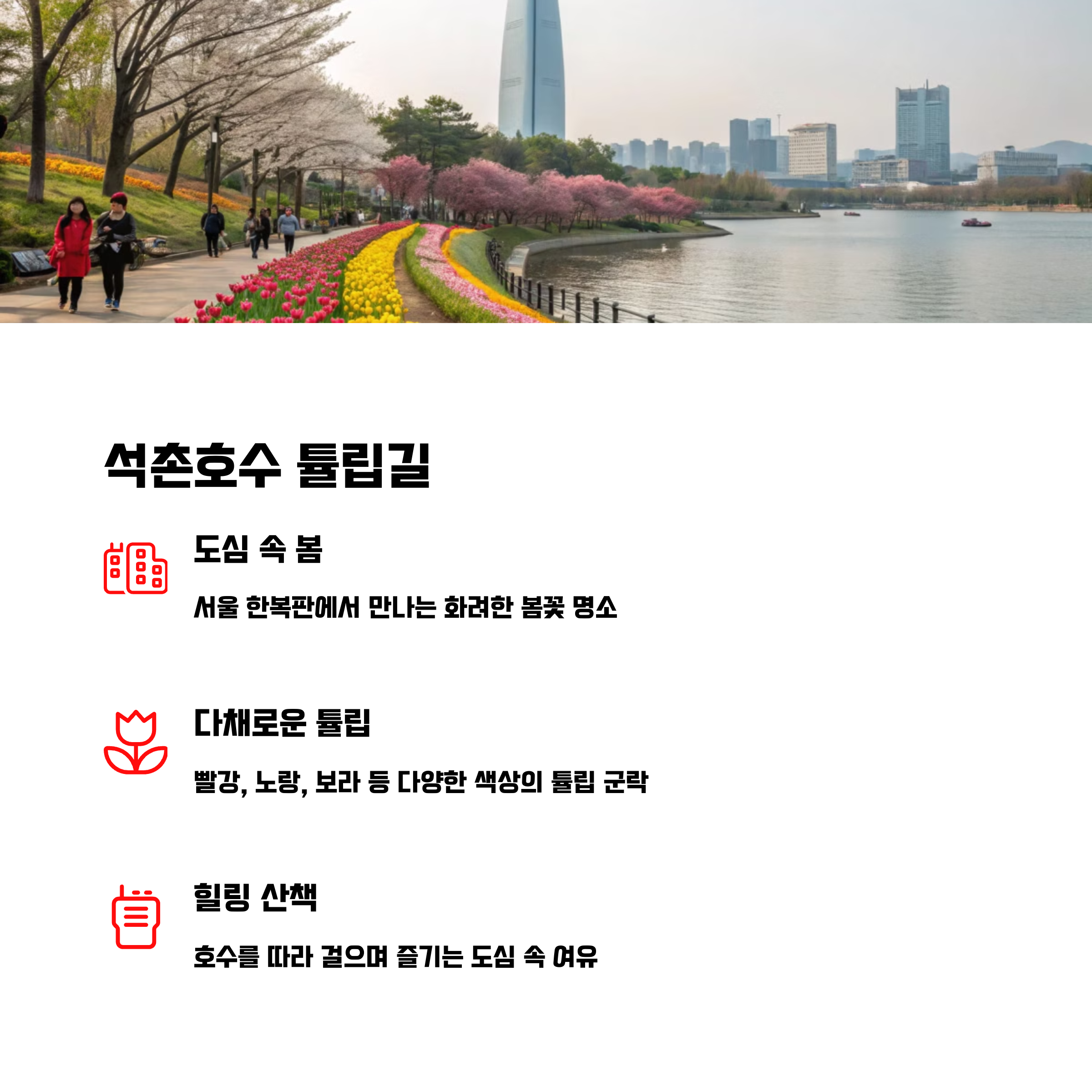 2. 서울 석촌호수 – 벚꽃 핀 줄 알았쥬? 근데 튤립! 🌷
