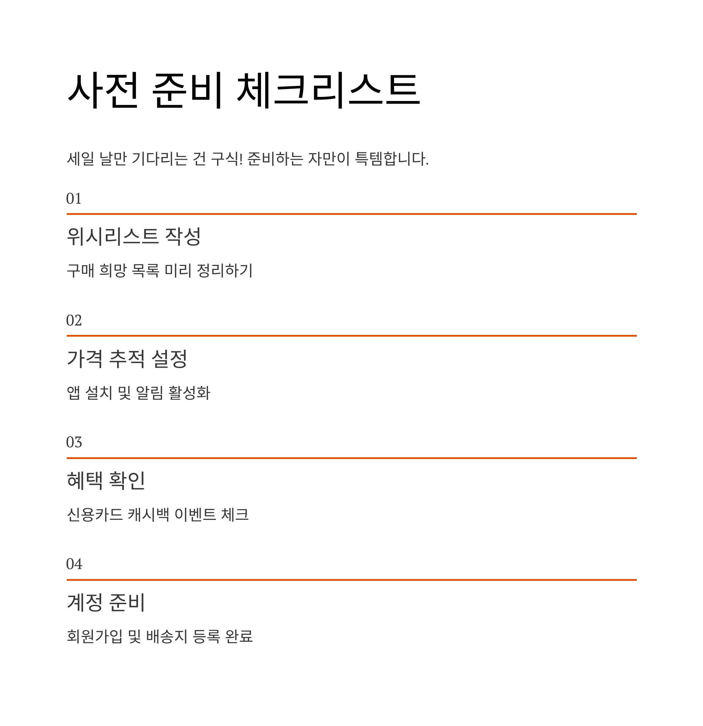 본격적인 세일 전 반드시 체크해야 할 항목들을 정리해봤어요.
