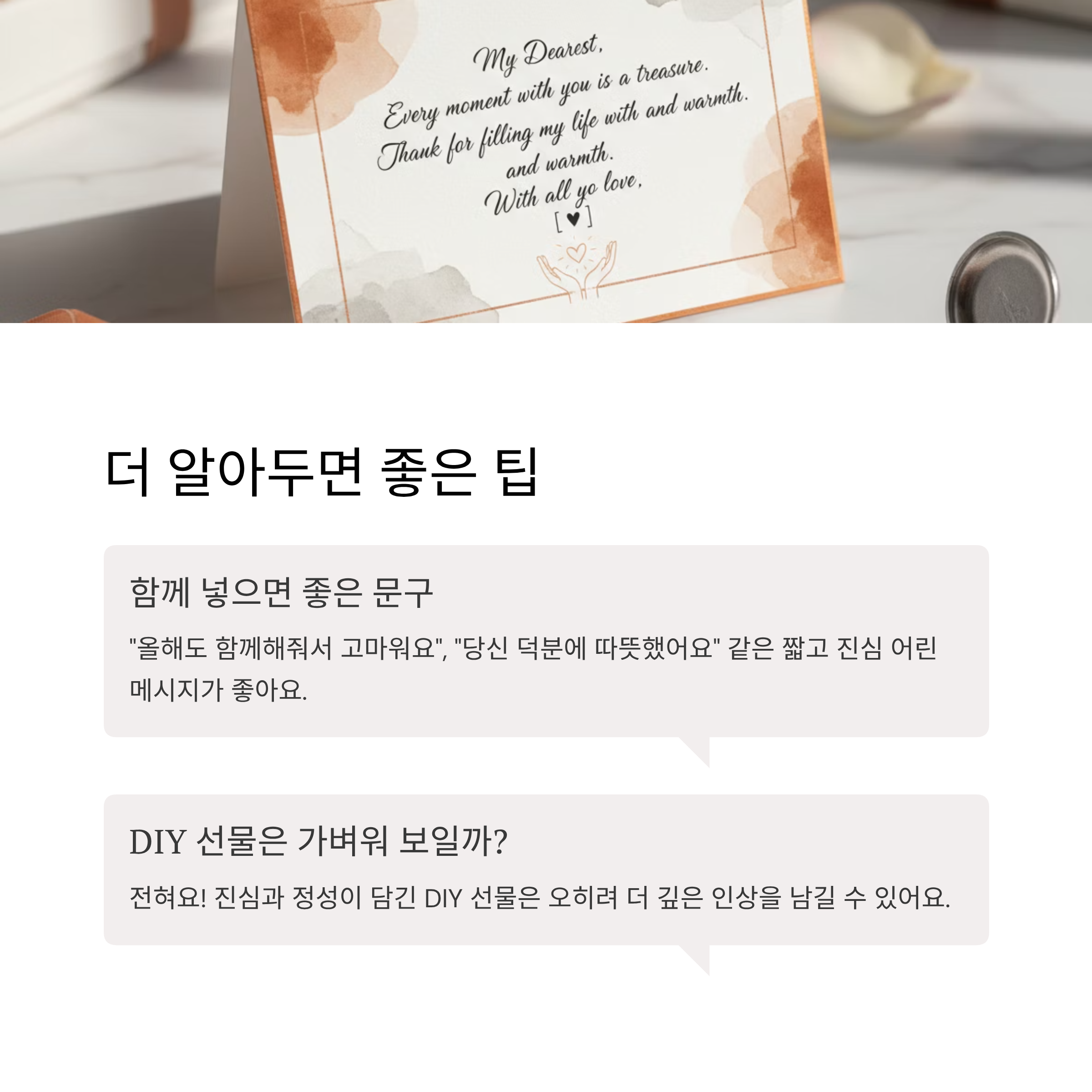 전혀요! 진심과 정성이 담긴 DIY 선물은 오히려 더 깊은 인상을 남길 수 있어요.