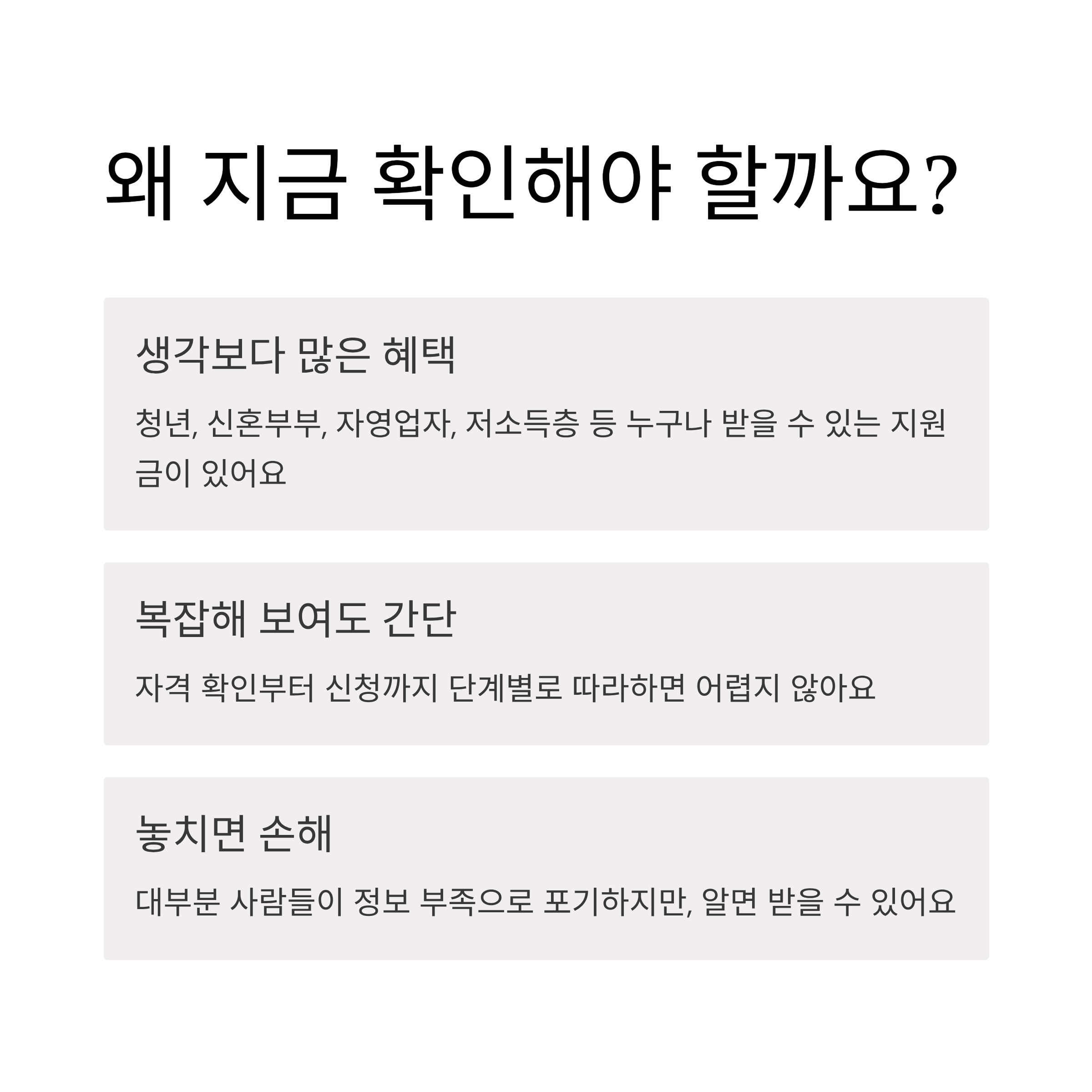 그런데 대부분 사람들이 ‘어디서 신청해야 하지?’, ‘자격이 될까?’ 하면서 그냥 포기하는 경우가 많아요.