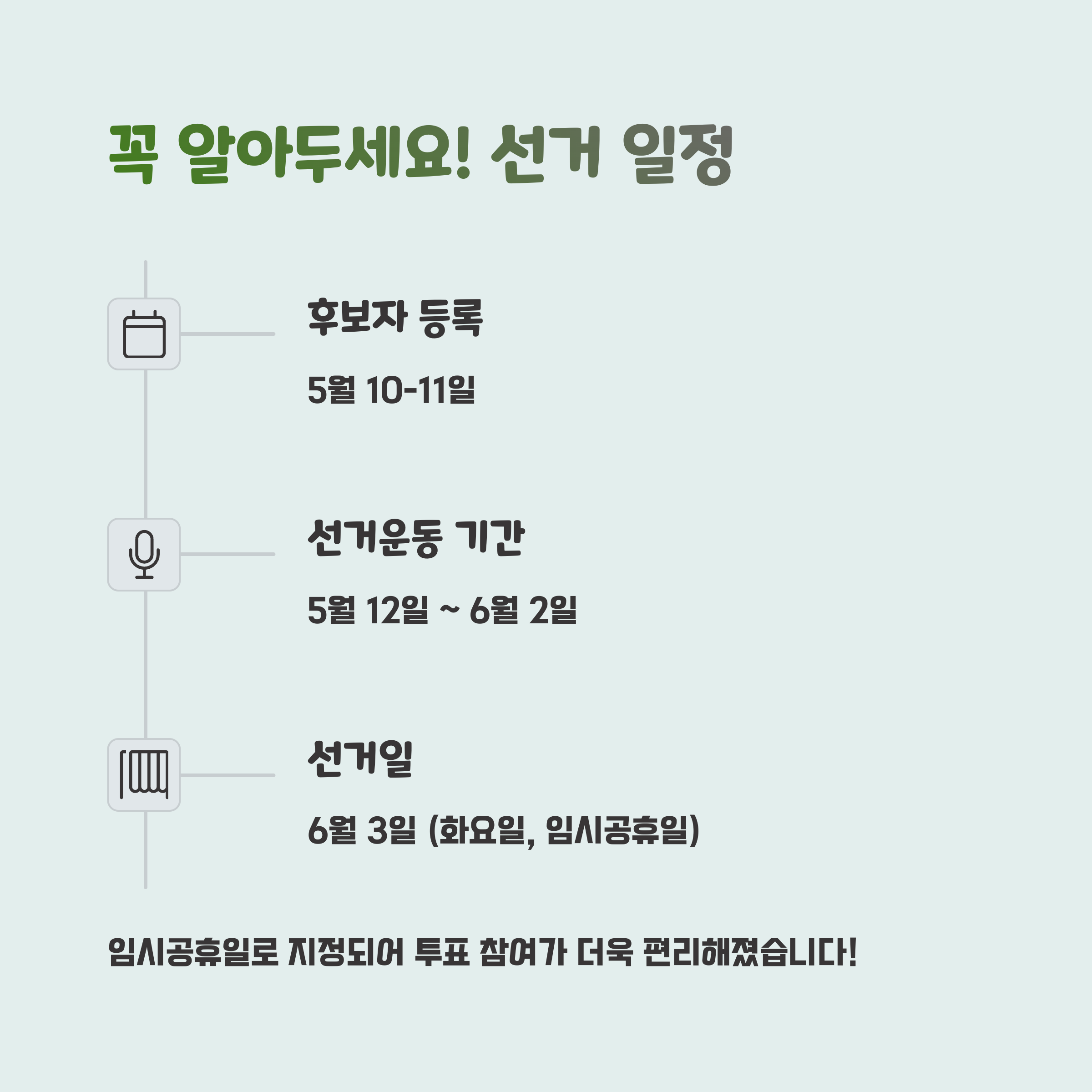 그 첫 단추가 되는 선거일자부터 확실히 체크해봅시다! 👀