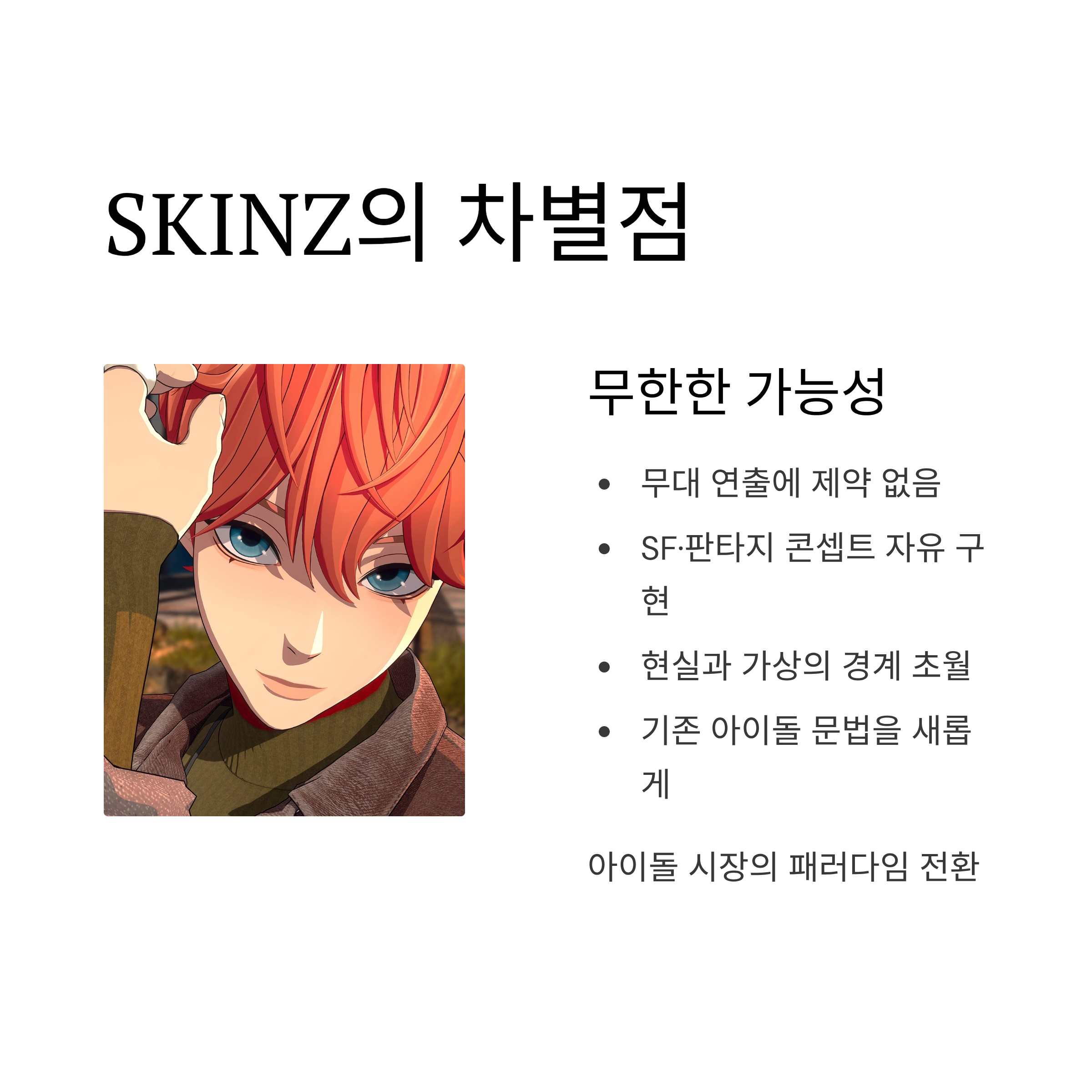 오프라인과 온라인을 넘나드는 융합형 아이돌이 대세가 되는 흐름에서 SKINZ는 정확히 그 최전선에 서 있는 팀입니다.