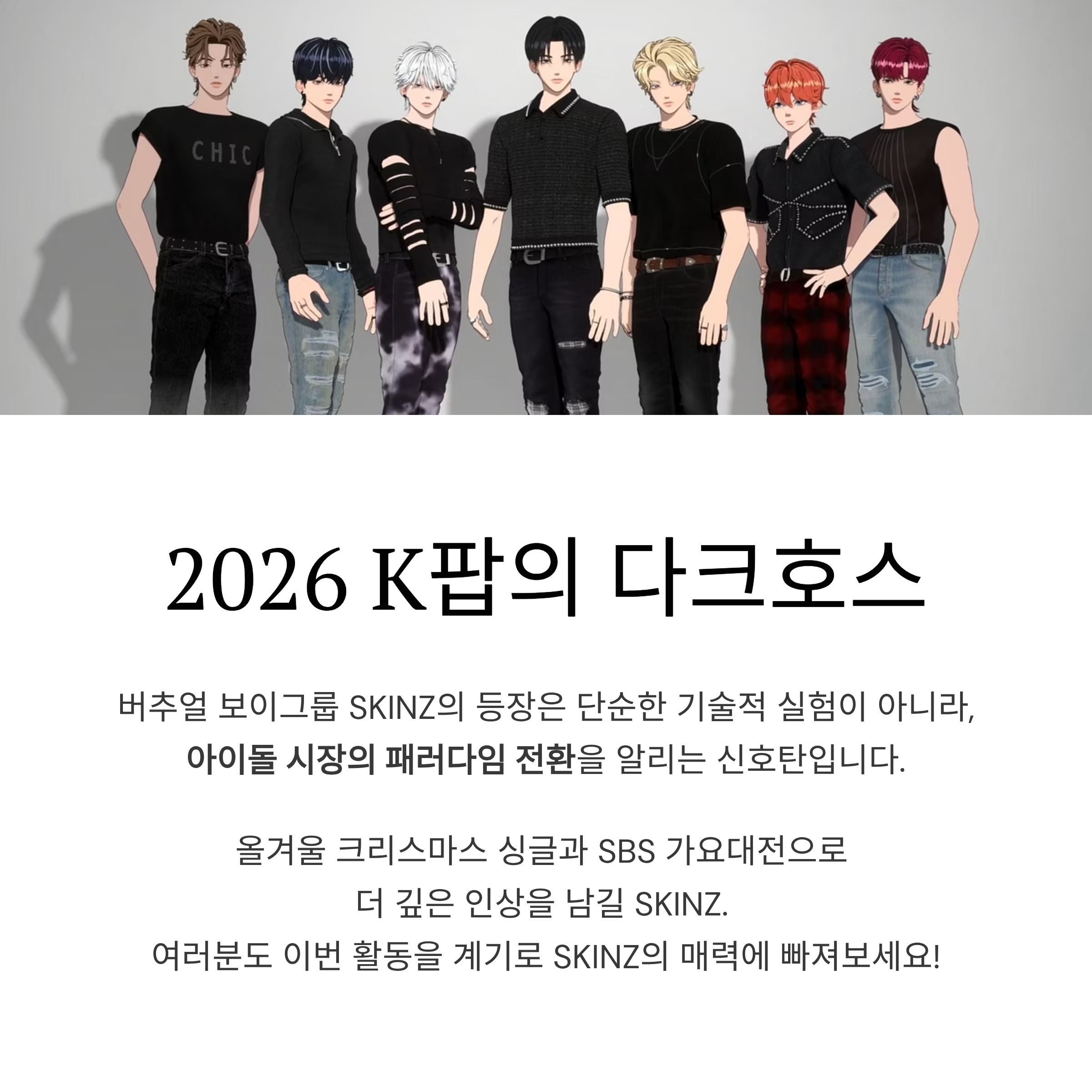가상과 현실을 넘나드는 버추얼 보이그룹 SKINZ, 드디어 연말의 중심으로 등장합니다!