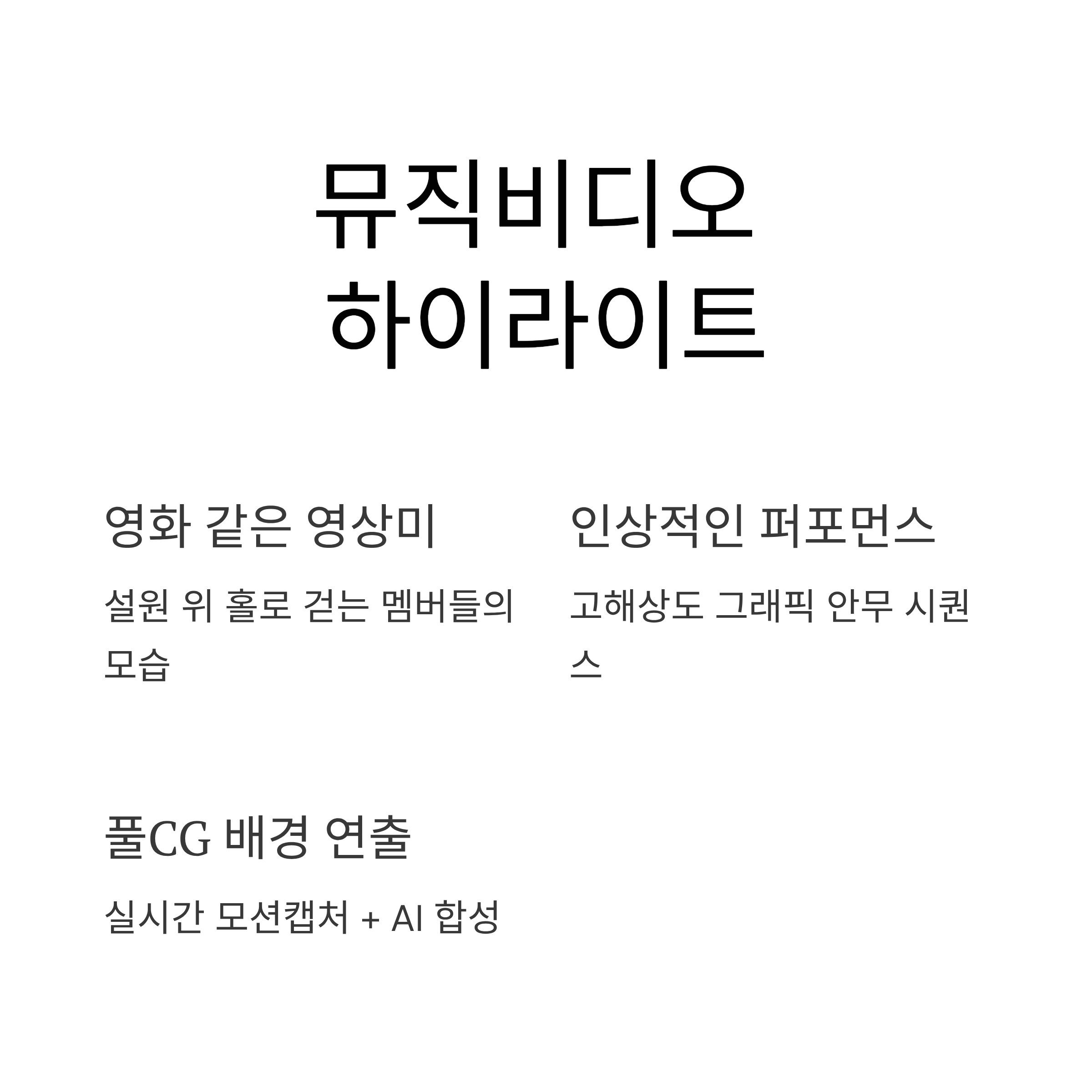 - 영상미: 설원 위 홀로 걷는 멤버들의 모습이 영화 같은 분위기를 자아냅니다.